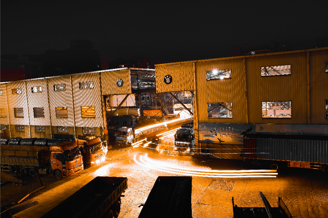 明海鑫專(zhuān)業(yè)鋼材交易市場(chǎng),裝貨發(fā)車(chē)車(chē)水馬龍景象。